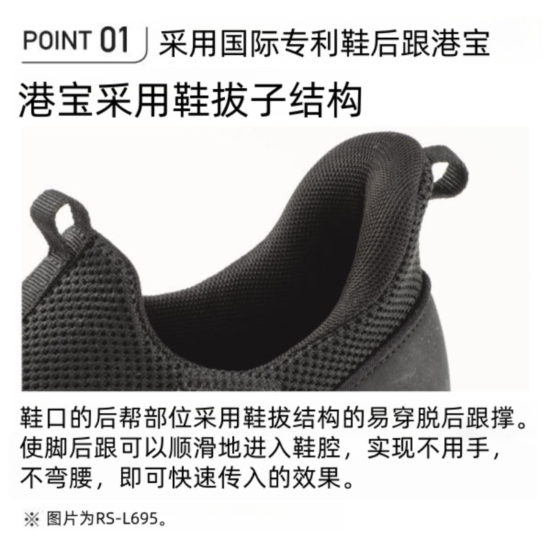 Hands-free shoes that can be put on while standing, without using hands or bending over. They are suitable for the elderly, pregnant women and people with physical inconveniences.