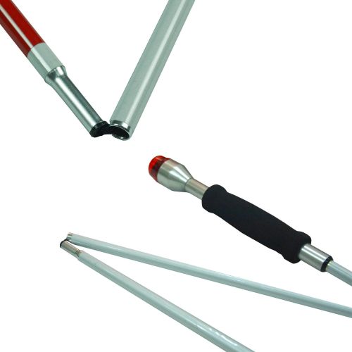 1.本產品采用優質鋁合金材料,長度可參照標準盲杖,并集音樂聲、警示燈為一體。采用先進按扭開關,使用方便,產品質量優良,自重輕,外觀精致美觀,可折疊,攜帶、收藏方便,是新一代的導盲理想佳品。 2.需要鳴示、燈示時,可按下按扭開關,音樂和閃光同時作用,再按一次即同時關閉。 3.盲人夜間行走,和車輛相遇時,除警燈發光外,桿身反光膜還會自動發光,警示車輛主動避讓。