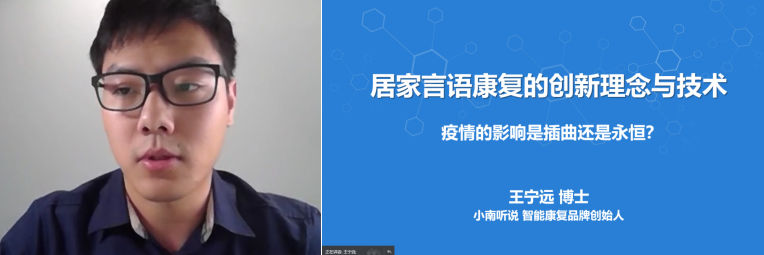 “小南聽說”智能康復品牌創始人、畢業于美國明尼蘇達大學認知與腦科學專業的王寧遠博士結合了近年來的技術發展,與參會人員探討了“創新居家言語康復的理念與技術--疫情的影響是插曲還是永恒?”這樣一個話題。在新技術的加持下,遠程康復與居家康復將會成為傳統線下康復模式的必要補充。