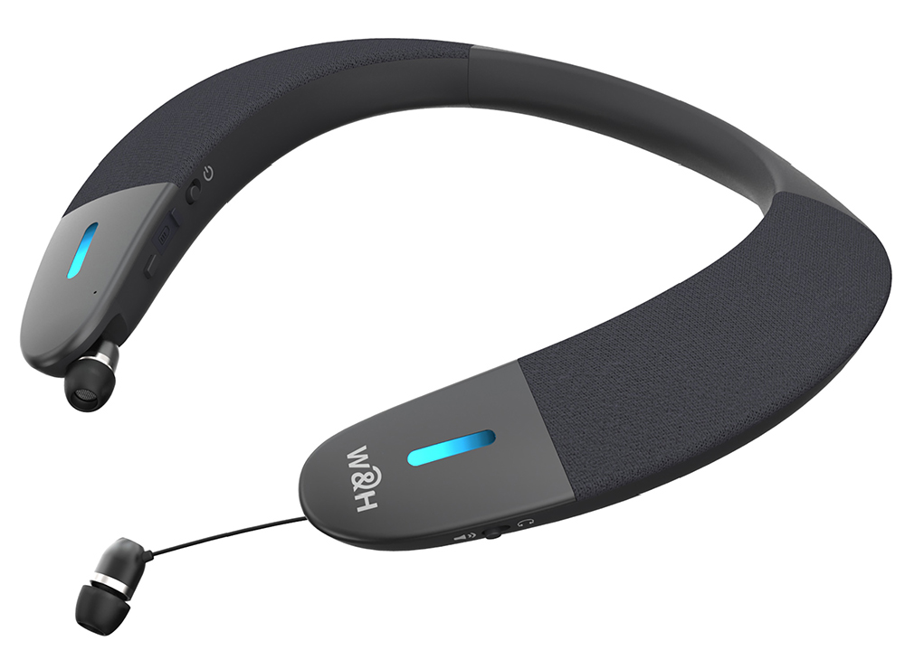 這是一款無線頸部揚聲器、麥克風和個人聽力放大器的獨特組合,由 Alango 先進的音頻技術提供支持。