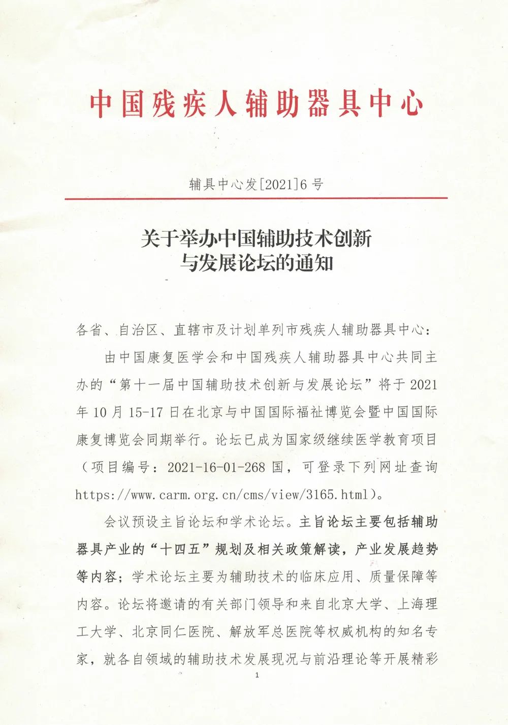 中國殘疾人輔助器具中心丨關于舉辦中國輔助技術創新與發展論壇的通知