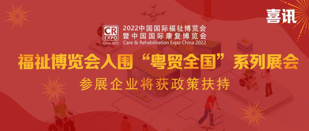 廣東省商務廳近日公布2022年“粵貿全國”名錄,經申報及專家評審,2022中國國際福祉博覽會暨中國國際康復博覽會(CR EXPO)成功入圍2022年“粵貿全國”系列展會!
