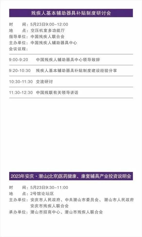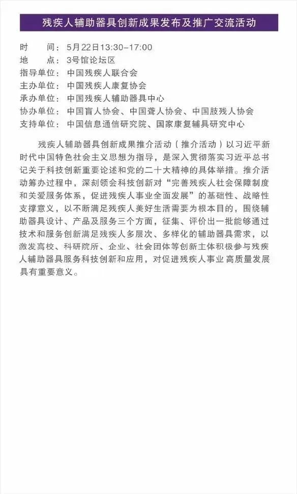 2023中國國際福祉博覽會暨中國國際康復博覽會以“面向下一個百年:創新賦能、合作共贏、增進福祉”為主題,將于5月21日-23日在北京首鋼會展中心舉辦。本屆福祉博覽會將集中展示殘疾人、老年人用輔助器具、康復醫療等領域的新產品、新技術、新應用,同期舉辦30余場專業論壇、采購對接等交流活動。