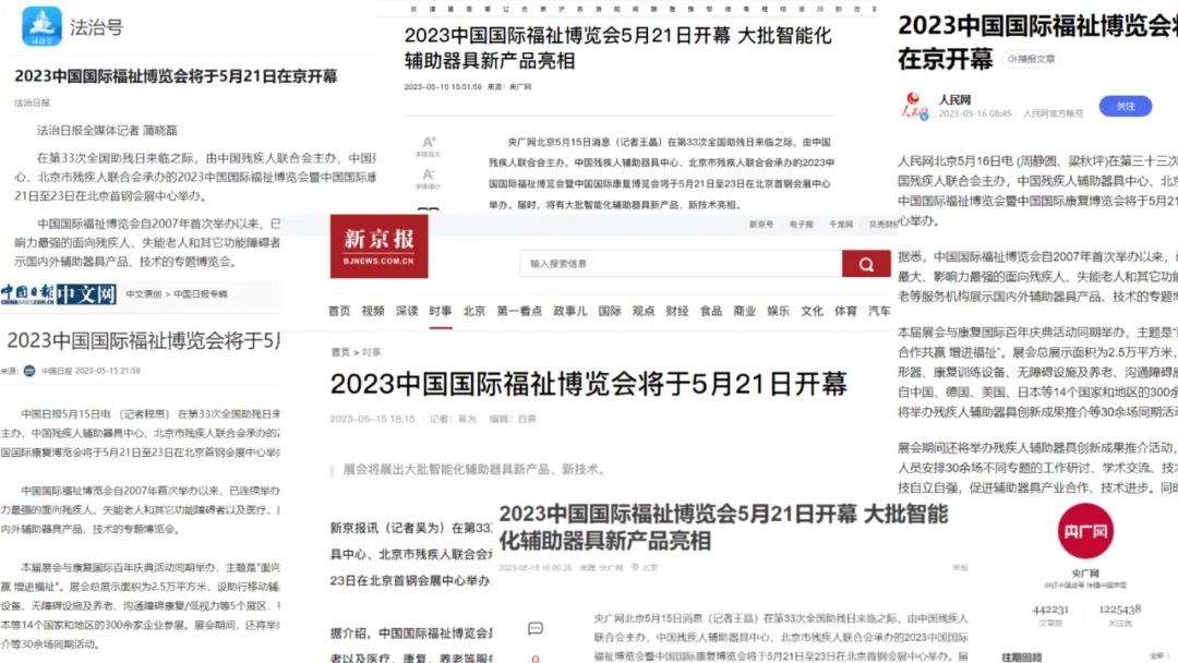 與此同時,人民日報、中國日報、新京報、法治報、央廣網、人民網、中國殘疾人聯合會等各大優質媒體平臺也為本屆福祉博覽會進行預熱報道,熱烈邀請廣大業界人士、殘疾人、老人群體蒞臨本屆展會現場,共享此次集智能科技前沿技術與人文關懷于一體的康復輔具盛宴。