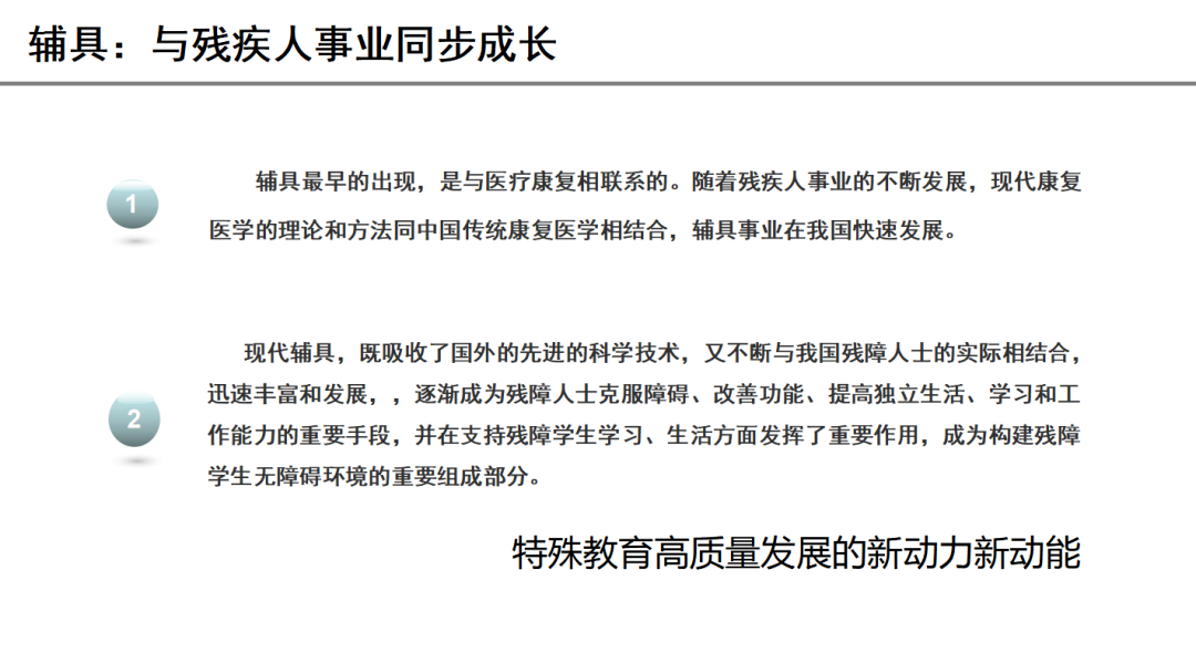輔具,讓殘疾兒童有學上;輔具,讓殘疾兒童上好學;輔具,助力特殊教育高質量發展。本屆論壇創新性地將輔具與特需兒童教育相結合,落實到教師指導,落實到學生參與,落實到課堂質量,更是落實黨和國家“強化特殊教育普惠發展”的重要舉措。讓我們共同努力,開拓進取、攻堅克難,共同促進特殊兒童最大限度地發展,讓特殊孩子與其他所有人一樣,同在藍天下,共享公平而有質量的教育!