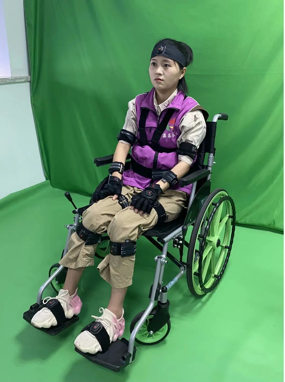 旋轉,擺手,隨著音樂的節拍舞動,如果不說,觀眾很難將直播屏幕中靈活的身姿與屏幕外坐著輪椅的身影聯系到一起。她叫趙琪,是數字人直播項目的一名主播,雖然是一名肢體二級殘疾人,但在科技的幫助下以虛擬分身的方式站立于屏幕中,通過直播的方式打拼著美好的未來。
