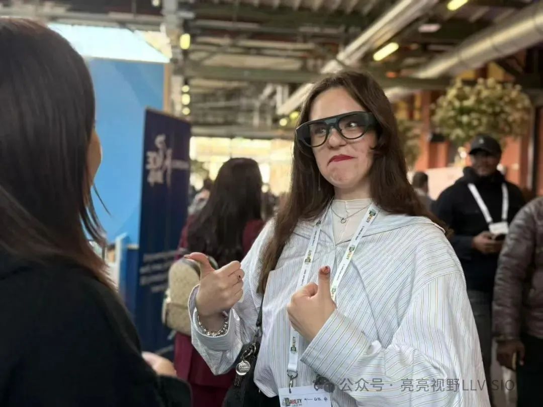 其中,亮亮視野展示了其“Leion Hey”助聽與翻譯智能眼鏡,該產品可實時翻譯多種語音,并轉換成文字顯示在透明鏡片上,可為多個國家聽障人士提供無障礙溝通解決方案。