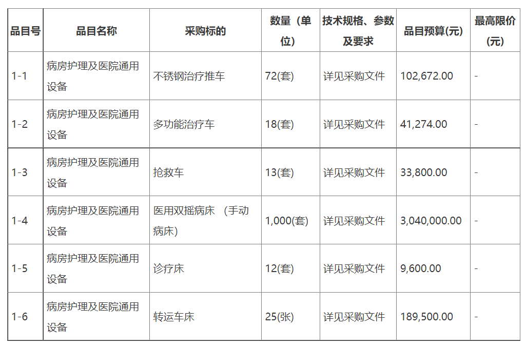 項目名稱:惠州市第一人民醫院采購醫用病床及護理設備項目
