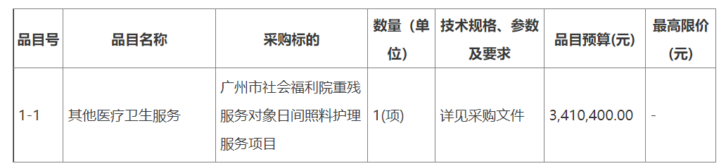項目名稱:廣州市社會福利院重殘服務對象日間照料護理服務項目