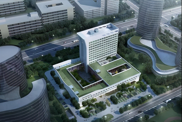 項目占地面積33772㎡,建設5棟建筑,分別是住院樓、門診樓、病房ABC座??偨ㄖ娣e66064.90㎡(地上總建面50657.09㎡,地下總建筑面積15407.81㎡),容積率1.5,綠地率35%,建筑密度25.4%,停車位數507個。醫院南側為2-2地塊的三棟科研辦公樓,三級康復醫院建筑面積17999.18㎡。