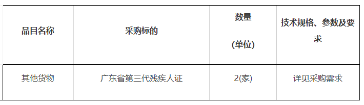 廣東省第三代殘疾人證供應商公開選取項目招標公告