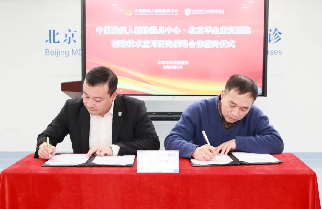 2024年1月2日,中國殘疾人輔助器具中心與北京華生康復醫院簽署共同推進輔助技術應用研究戰略合作框架協議。雙方表示將致力加強輔助技術在康復領域中的應用研究,切實在共建輔助技術服務和實訓基地、開展輔助技術應用研究及標準化研究等方面進行開拓性、創新性的探索,形成輔助技術與康復服務融合的有效銜接路徑和經驗做法,共同為促進功能障礙者獲得適宜輔助技術和康復服務,追逐華彩人生,實現美好生活而共同努力。