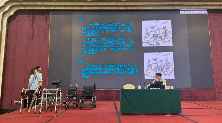 授課專家講解輪椅等輔具的特點。
