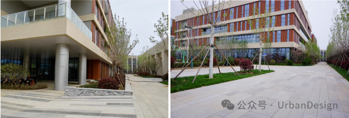 以中國人民大學通州新校區為例,該校區總用地 110 公頃,總建筑面積約 105 萬 m2,總體規劃呈一核兩軸多中心的框架體系, 3 條城市次干路穿行校園,成為重要的交通共享帶和城市界面,校園局部道路采用立體交通聯系,外圍城市干道設有地鐵站點。