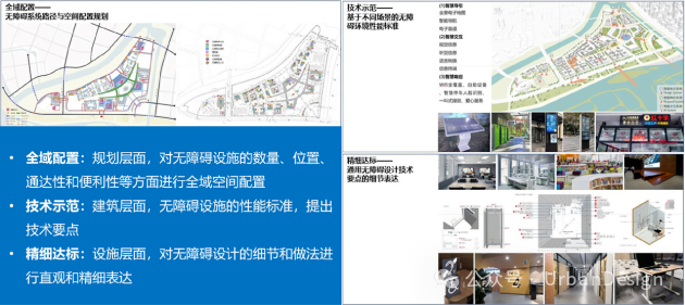 傳統校園無障礙表現普遍不佳的一個重要原因是精細化嚴重不足——無障礙設施配置注重解決有無問題,而忽略了設施配置的準確性,更遑論其舒適性和體驗感。因此,包容性校園設計需要從編制大學校園無障礙專項設計導則(圖 7)或任務書開始,針對不同高校規劃特點,明確無障礙性能目標,確定無障礙設計標準、技術要點和實施細則,并指出優化提升方向。設計單位應繪制出清晰、易懂的無障礙專項設計圖示——更多引入軸側圖等直觀表達方式,規范設施節點細部尺寸,確保建造者清晰了解設施的安裝要求,為后續施工的精準到位提供技術保障。