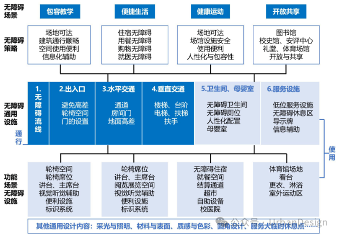 一個具有更高包容性的校園不僅意味著校園在面對全齡、全時、全域的使用需求時,可以提供安全、健康、便捷的友好環境,更應由此體現并傳達多樣教學、靈活學習、高效反饋、反思實踐的“包容性教育”原則。為此需要規劃師、建筑師在滿足無障礙設計相關設計規范與標準要求的基礎上,切實從使用者視角,在提高無障礙設施配置的系統性、設計建造的精細化、場景體驗的多元化、信息傳播的有效性等多方面,全面提升校園的無障礙表現。