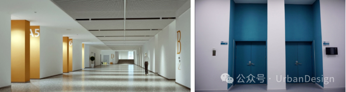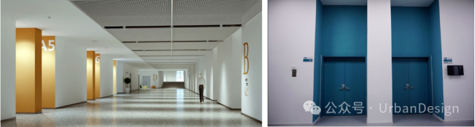 室內通過色彩變化進行功能分區,標識采用大字體和高對比度形式(圖 14)。