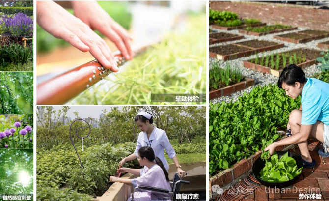 康復大學校園包容性設計中注重人的心理感受,充分發揮康復學科的特點,利用康復醫學、康復景觀學等相關理論,借助場地、空間與陽光、空氣、植物、土地的相互作用,采用園藝療法等療愈手段,利用植物栽培與園藝操作活動幫助有需要人士從其社會、教育、心理以及身體諸方面進行調整更新(圖 20)。
