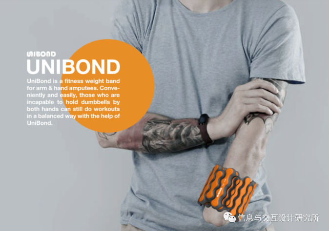 UniBond是一款適合手臂和手部截肢者的健身配重帶。無法雙手同時握住啞鈴的人,在UniBond的幫助下,仍然可以方便、輕松地進行均衡鍛煉。用戶可以用他/她有能力的手將它纏繞在另一個人的手腕上,然后卡扣和磁鐵使其保持緊密和穩定。此外,外觀設計和明亮清新的色彩選擇給人以力量和活力的感覺,鼓勵用戶進行鍛煉。