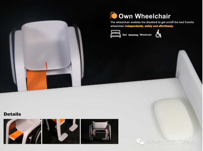 腿部殘疾人士在使用輪椅的過程中,上下床是一個很不方便的過程,一般需要其他人或輔助工具的幫助來完成,如果獨自上下床,則存在摔倒的危險。Own-Wheelchair無障礙過床輪椅專為腿部殘疾人士設計,幫助他們在使用輪椅時能夠獨自、安全、省力地上下床。