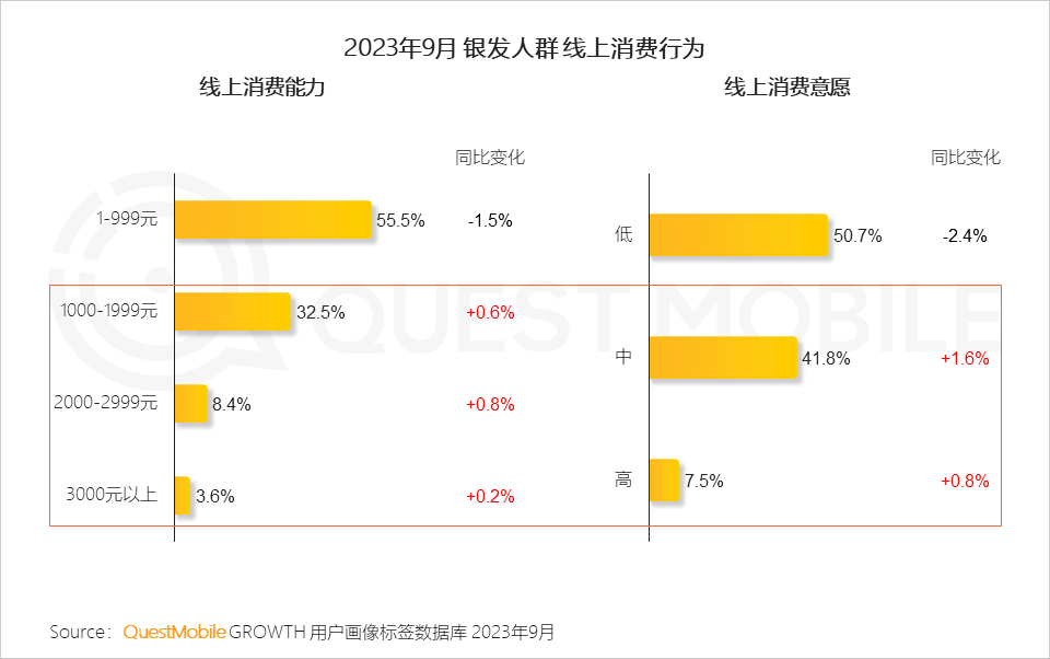 3、銀發經濟市場潛力凸顯,較去年相比,源于向高線級城市遷移,銀發群體表現出的線上消費能力、消費意愿均有明顯提升。