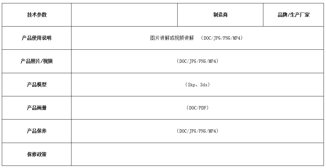 輔具類別、輔具名稱、具體適用對象、產品特點、功能、品牌、制造商/生產廠家、產品使用說明(由廠家提供詳見WORD文檔)注:參考格式按附件2 |