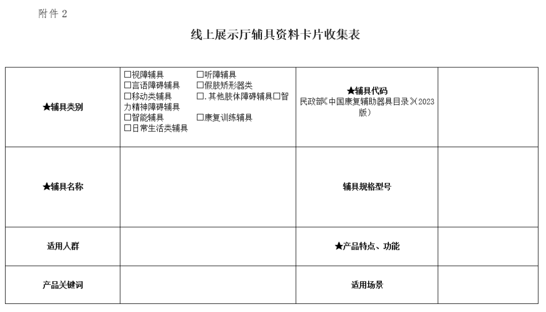 三、請有意向的輔具企業按照附件1、2提供素材電子文檔,于3月7日前發省殘疾人輔助器具資源中心,文件包統一命名:企業簡稱+輔具線上展廳素材+聯系電話,電子郵箱:492440744@qq.com。