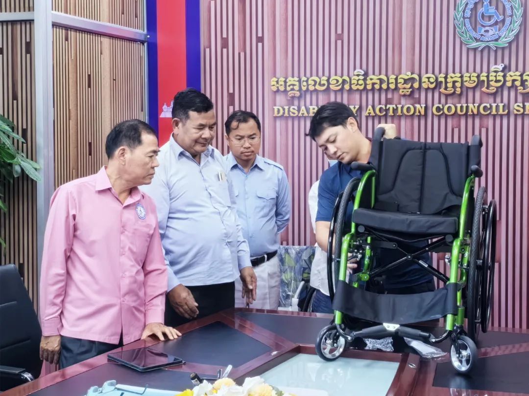 在了解柬埔寨和老撾輔助器具基本狀況和需求的基礎上,輔助器具中心結合國內輔助器具生產情況,確定了捐贈的輔助器具產品類別及技術參數,向國內輔助器具生產企業采購了1300余件輔助器具用以援助兩國。2023年11月,輔助器具中心派遣工作組赴老撾、柬埔寨,舉行輔助器具捐贈儀式。老撾、柬埔寨合作部委高度重視中方捐贈。老撾勞動和社會福利部殘疾人、老年人政策司副司長,柬埔寨社會事務、退伍軍人、青年康復部部長兼殘疾行動委員會主席分別出席捐贈儀式,中國駐柬埔寨大使館林瑞華參贊出席活動。