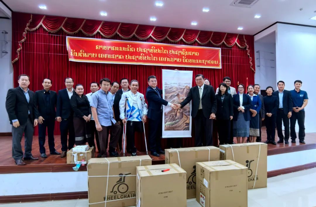▲亞洲合作資金-愛心助殘惠瀾湄·輔助器具服務能力提升項目在老撾的捐贈儀式。此次項目所捐助的產品都是根據當地需求調研結果而采購的中國生產的高品質輔助器具。
