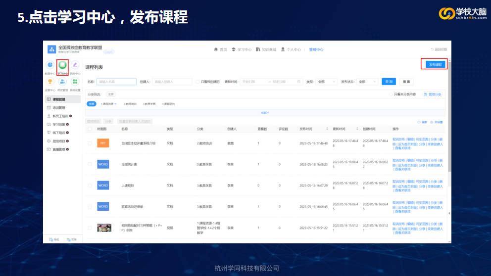 包括孤獨癥早期教育、義務教育、職業教育、融合教育的具體課例,同時向“全國孤獨癥教育教學聯盟”資源庫提供教案(教學設計)。課例類型不限(不建議個訓,鼓勵集體或小組課,盡量選用合適的教具、學具或輔具)。鼓勵老師們自己制作輔具,不出現廠家名字或任何企業標志及信息。參加單位需同時提供輔具名稱和孤獨癥教學設計方案及視頻(注意保護學生肖像權)。視頻為MP4格式,畫面清晰,總時長為自然課時(一般為35分鐘),與孤獨癥相關的主要教學內容與過程在屏幕上有文字顯示。教學設計及視頻需上傳至“全國孤獨癥教育教學聯盟”資源庫,操作要求見下圖。