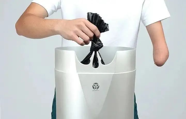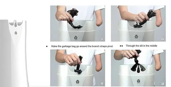 為殘疾人設計的單手垃圾桶,可以單手輕松包扎好垃圾袋,讓少部分人的需求得到滿足,并且注重設計的美觀和耐用性。