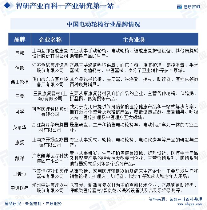 目前,中國電動輪椅市場已經實現了從依賴進口品牌到本土企業主導市場的重要轉變,這一轉型得益于國產電動輪椅產品近十年來的快速發展和顯著進步,以及性價比和技術創新??傮w來看,我國電動輪椅行業涌現出一批優秀的本土品牌,如互邦、魚躍、佛山輪椅、英洛華、康揚、凱洋、中進醫療和可孚等。這些企業不僅在國內市場占據了重要的市場份額,更以其卓越的產品質量和服務,贏得了消費者的信賴和市場的認可,形成了強大的品牌影響力。