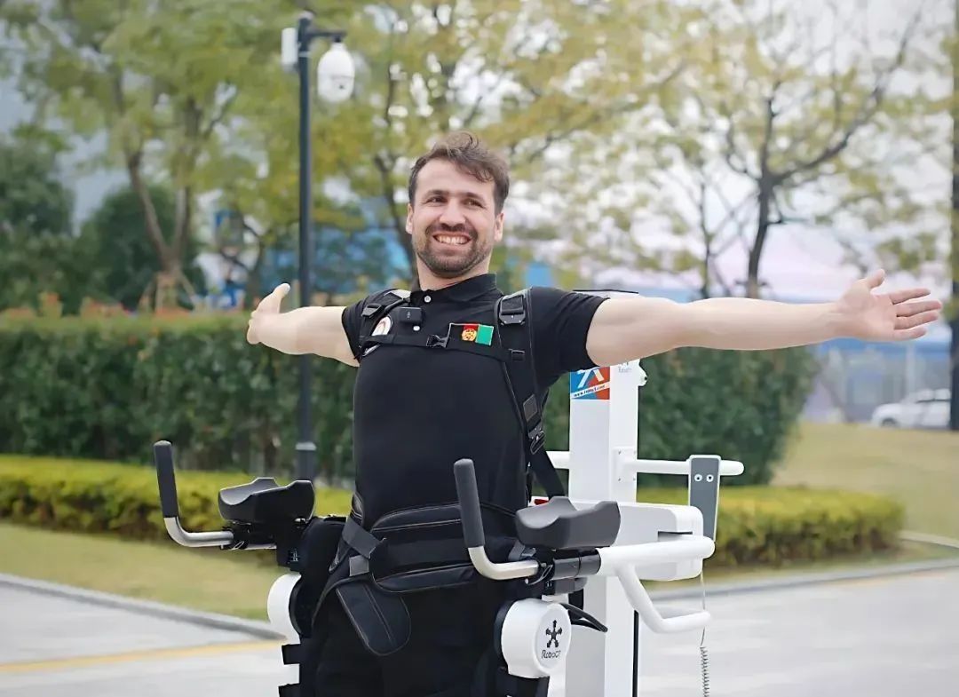 同樣,在2023年亞殘運會期間,來自阿富汗的輪椅籃球運動員阿卜杜勒·巴塞特·哈希米也在程天科技外骨骼機器人的輔助下,終于能夠自主站立并自由行走。