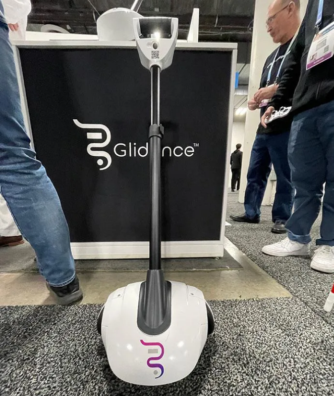 美國Glidance公司研發的Glide導盲機器人集成了用于導航和躲避障礙的尖端傳感器,其可通過手柄上的觸覺和音頻向用戶發送指示,從而幫助用戶規避障礙。
