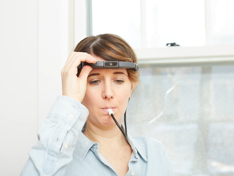 有著“電子棒棒糖”之稱的口腔電子視覺輔助設備BrainPort Vision Pro則可以用一個布滿電極的口含傳感器幫助視障人群導盲。用戶只需要戴上頭戴設備,并將口含傳感器放置在口中,內部搭載的攝像機便會自動捕捉周圍環境,并轉化為黑白灰三種不同色階的圖像,隨后轉化為電信號發送至口含傳感器中。通過三種圖像所反饋的不同強度的刺激,用戶便可將周圍信號翻譯為物體的形狀、位置等信息,從而指引用戶方向并進行避障指引。