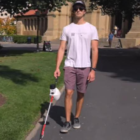 除此之外,斯坦福大學智能系統實驗室也研發出了一款智能導盲手杖。該手杖搭載了激光雷達、GPS,可根據目的地進行實時導航,也可為視障人群進行障礙探測并規劃路線。