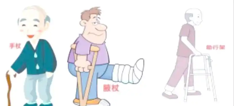 手杖使用技巧包括握持位置、步行與上下樓梯技巧。注意:在圖中,患側腿以藍色進行標記,而手杖則被放置在使用者的健側。手柄高度:當身體保持直立,雙手自然垂在身體兩側時,從手部橫紋處量起到地面的垂直距離。手杖的支點應擺放在健側腳邊約15厘米處,這是手杖使用的基礎姿勢。在平地行走時,建議初學者遵循三步走的順序:首先移動手杖,接著邁出患肢,最后走健肢。隨著對手杖使用的熟悉,可以逐漸過渡到兩步走:手杖與患肢同步前進,再邁出健肢。對于上下樓梯,則需分別注意:上樓時,手杖先行,緊接著健肢踏上樓梯,最后邁出患肢;下樓時,同樣遵循手杖先行的原則,但順序相反,即患肢先下,再邁健肢。