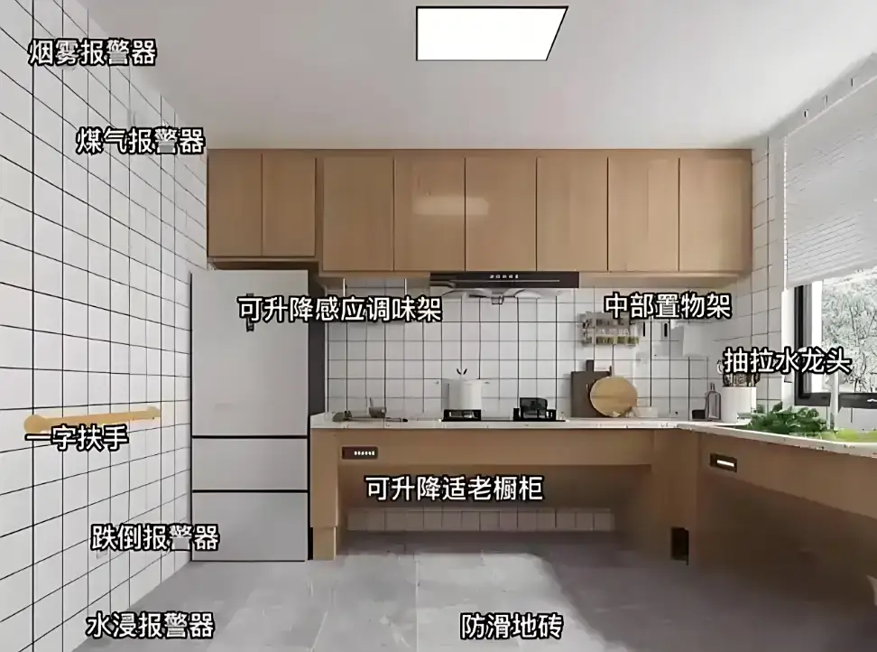 適老化改造通過“細節關懷”幫助老人重獲主動權:降低廚房臺面高度,讓烹飪不再“仰頸費力”;