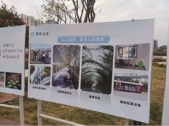 記者在現場觀察到,健康步道的路面還做了防滑設計,非常適合殘疾人、老年人等行動不便的群體行走;步道中段還設有加寬休息平臺、遮蔭花架等供人休息,休息平臺上方的遮雨棚還印有藍天白云、白鴿、彩虹等以“廈門藍”為主題的彩繪圖案。