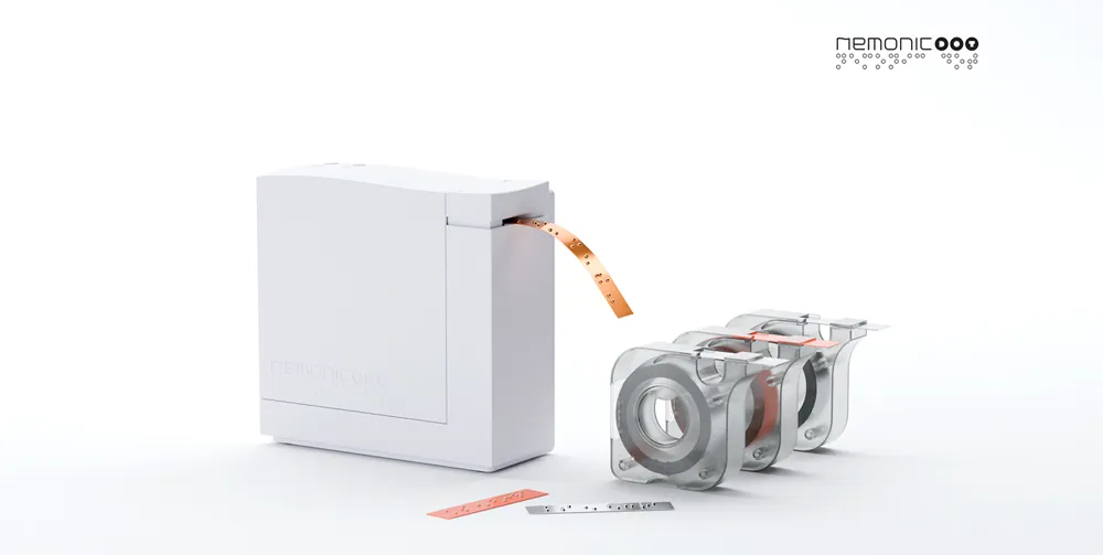 視障人士在日常信息獲取上面臨諸多障礙,盲文材料往往難以獲得或不夠清晰。Nemonic Dot集便攜式盲文標簽打印機與移動應用于一體,實現了按需制作高保真盲文標簽的可能,能在任何地方提供可靠的盲文標識。