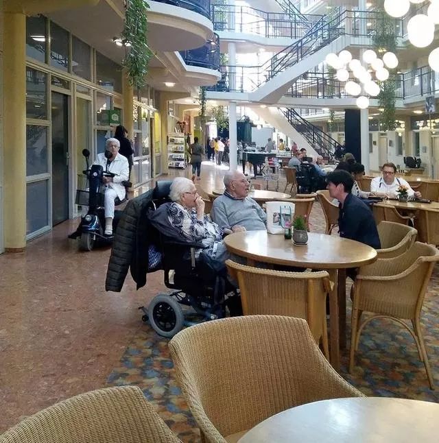 荷蘭的養老機構中除長期照護的養老院之外,還有一種主要類型就是針對可自理老人的生活支持型的養老公寓。這種機構一般會向老人提供包括餐飲、保潔、娛樂以及陪護等服務,并與醫院、居家護理機構保持緊密聯系,以中國人耳熟能詳的“荷蘭生命公寓”為代表。荷蘭生命公寓的建筑通常有個很大的特點,就是公寓的建筑圍合出一個很大的采光中庭,擁有體量很大的共享空間,里面各種活動非常豐富,并對周邊社區開放。