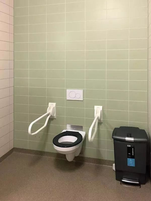 衛生間一般根據建筑條件的不同,兩位老人共用一間,或一個單元共用3~4個衛生間。 衛生間的尺度都很大,除了適老化、無障礙的設計之外,還針對失智失能老人的特點進行設計,比如考慮輪椅進出以及助浴的需要,墻面地面色彩的對比也是精心設計的。
